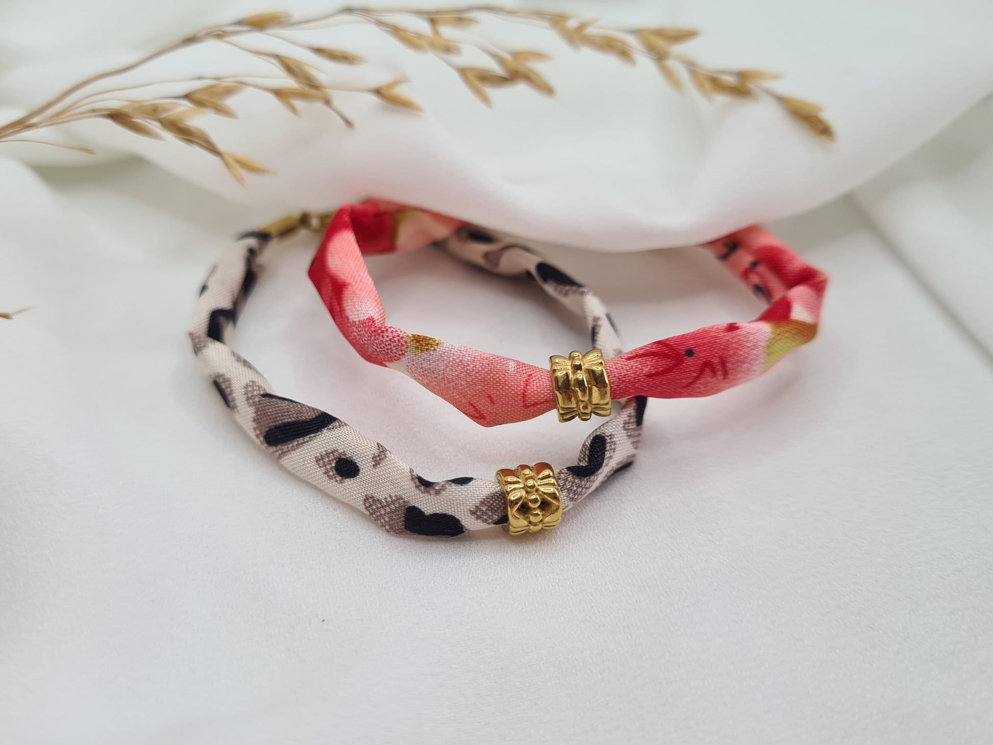 Magnifique bracelet fait main en tissus et acier inoxydable réglable