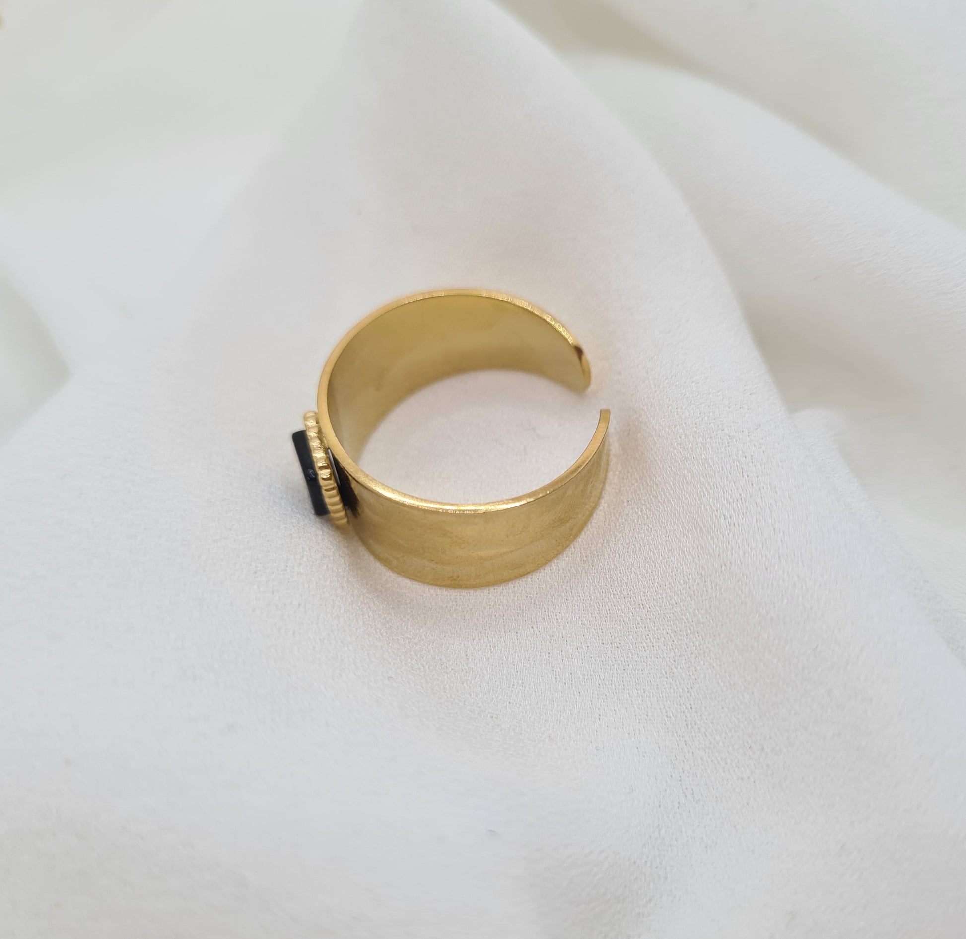 Magnifique bague en acier inoxydable réglable et pierre naturelles