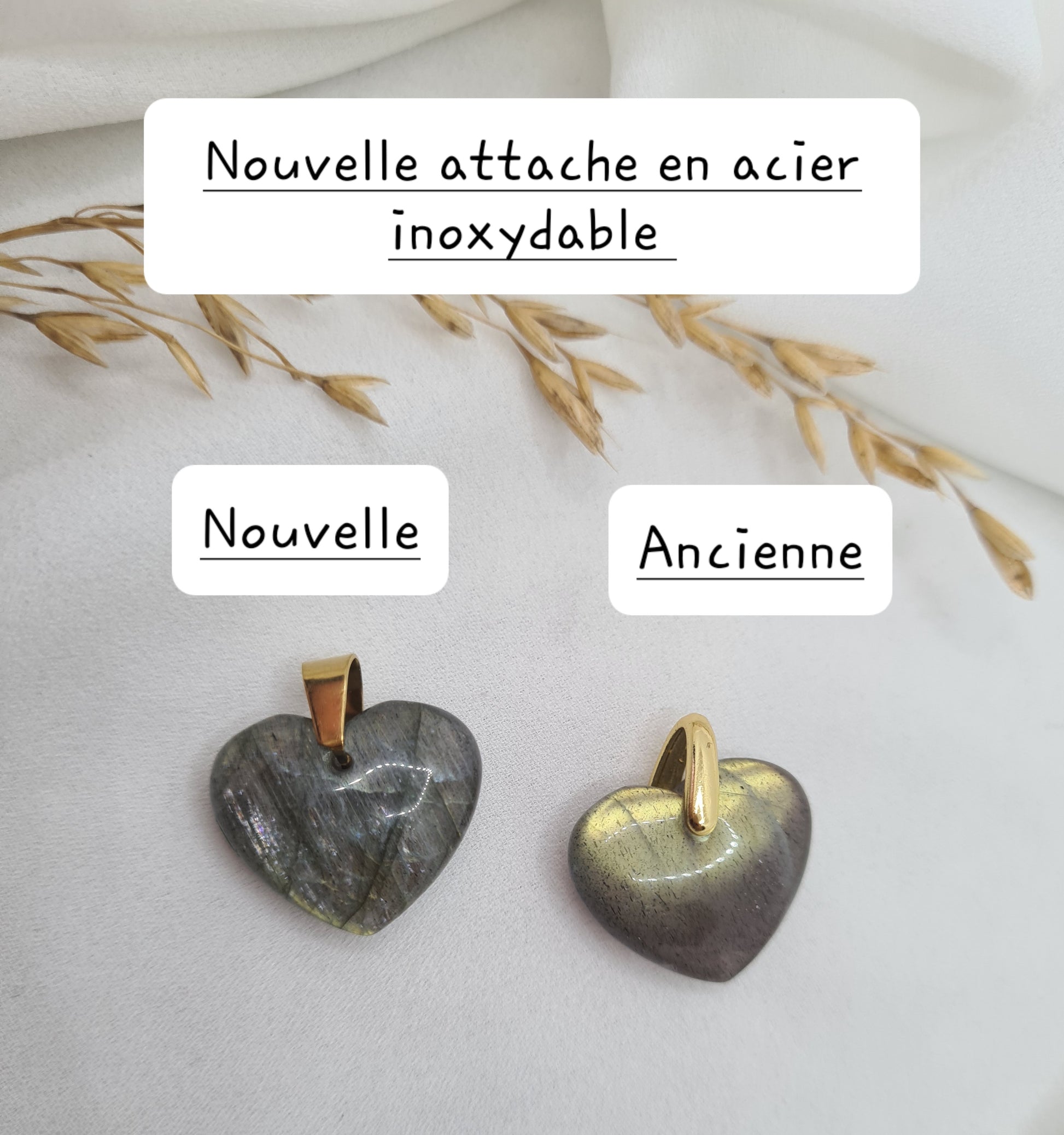 Magnifique collier personnalisable en acier inoxydable avec une pierre naturelle en forme de cœur et une chaine serpentine de 50 cm ou 70 cm( sautoir) ou une chaine à anneau rond de 37 cm avec 5 cm de rallonge. Chaine en acier inoxydable, bélière en laiton