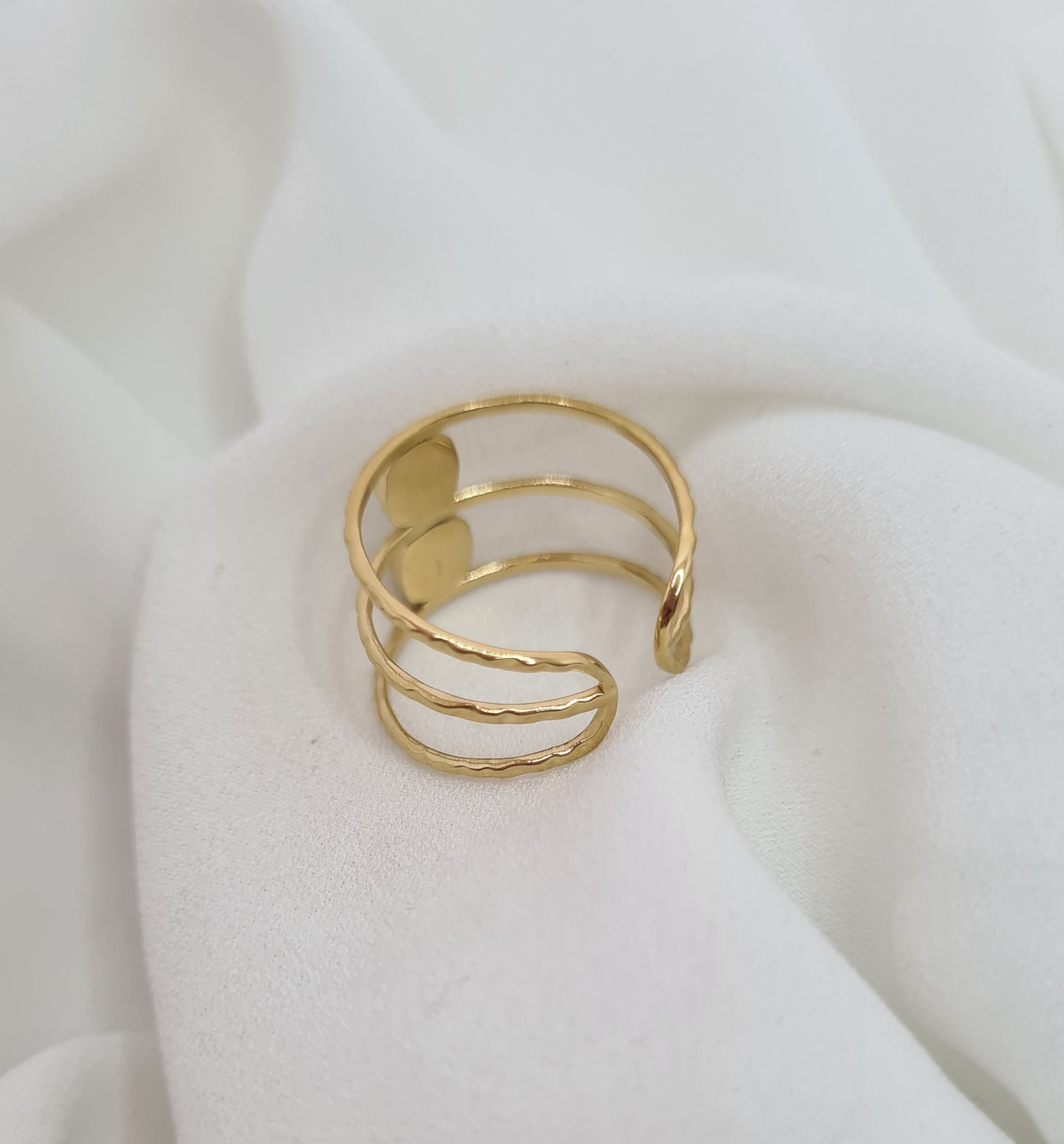 Magnifique bague en acier inoxydable réglable et pierre naturelles