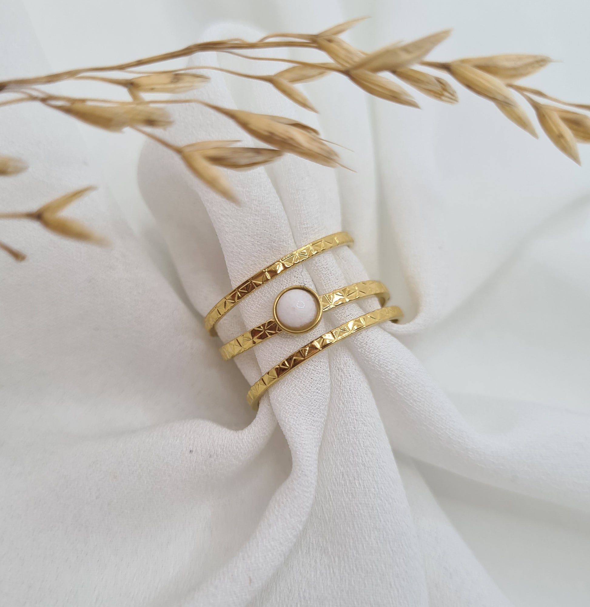 Magnifique bague en acier inoxydable réglable et pierre naturelle d'Agate blanche