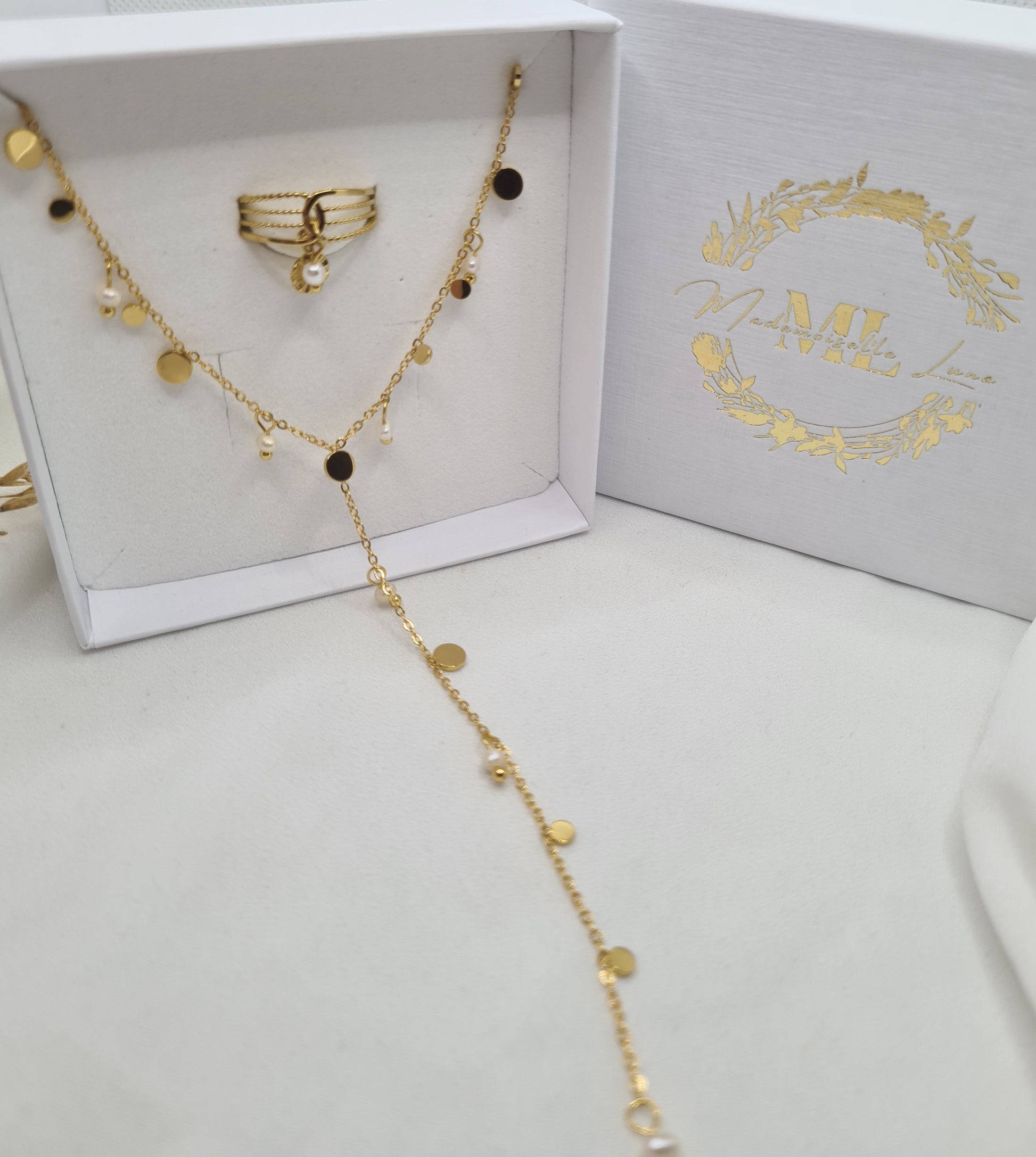 Magnifique coffret composé du collier LISA et de la bague NATUROL, en acier inoxydable.