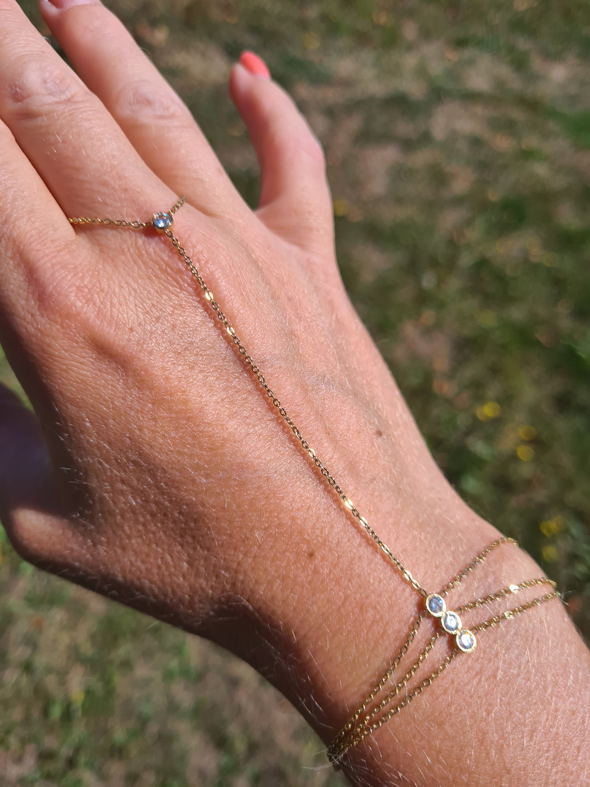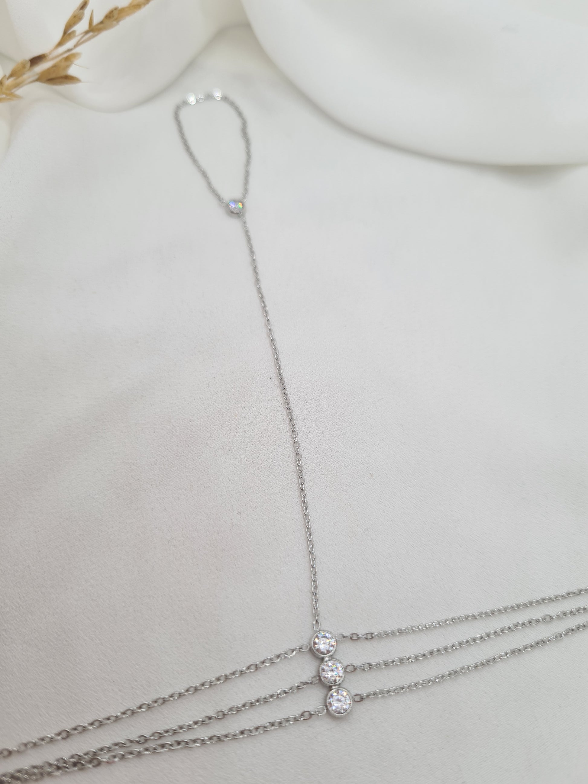 Magnifique chaine de main en acier inoxydable réglable et pierres de zircons