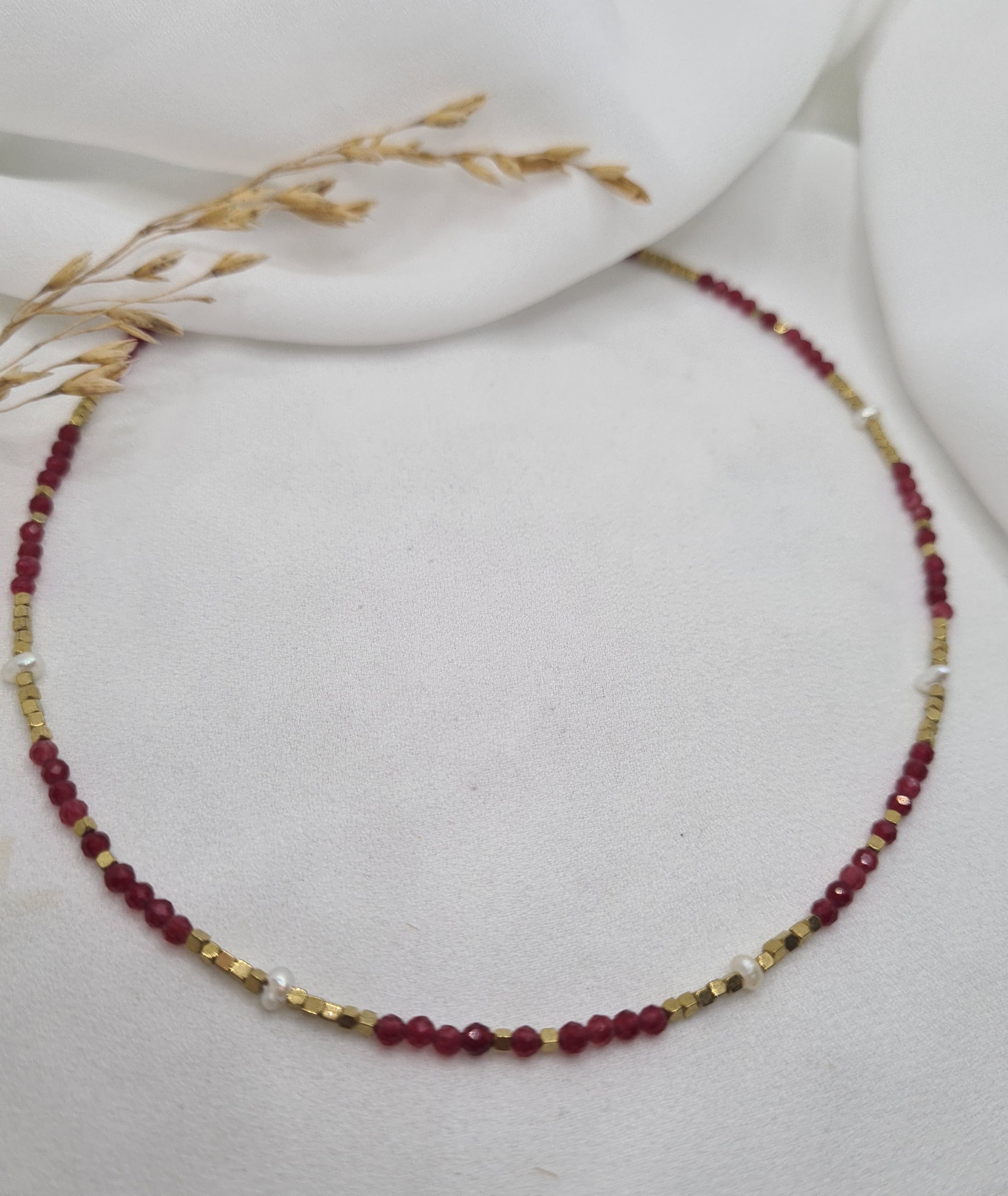 Magnifique collier en acier inoxydable réglable et pierres naturelles GRENAT.