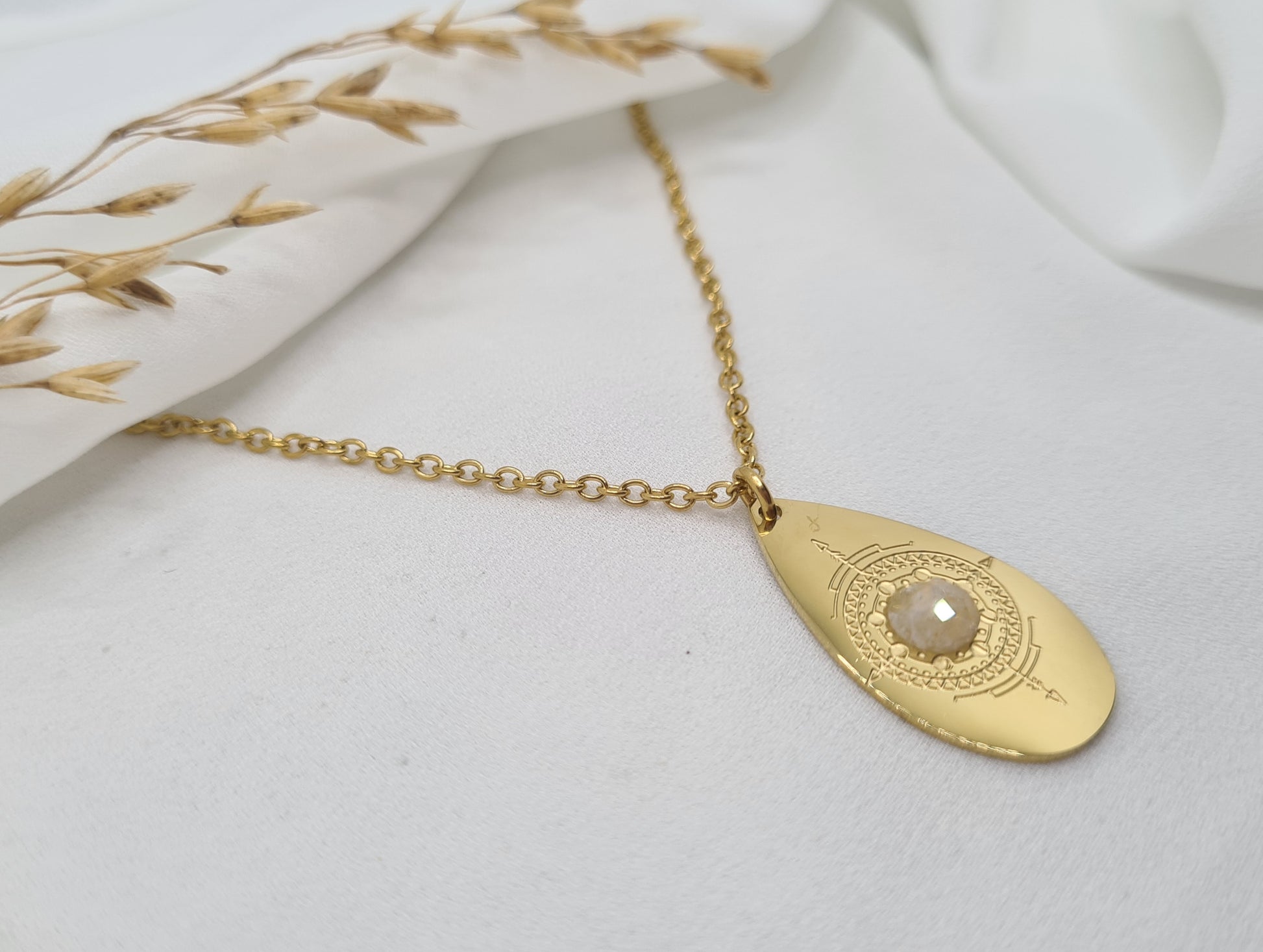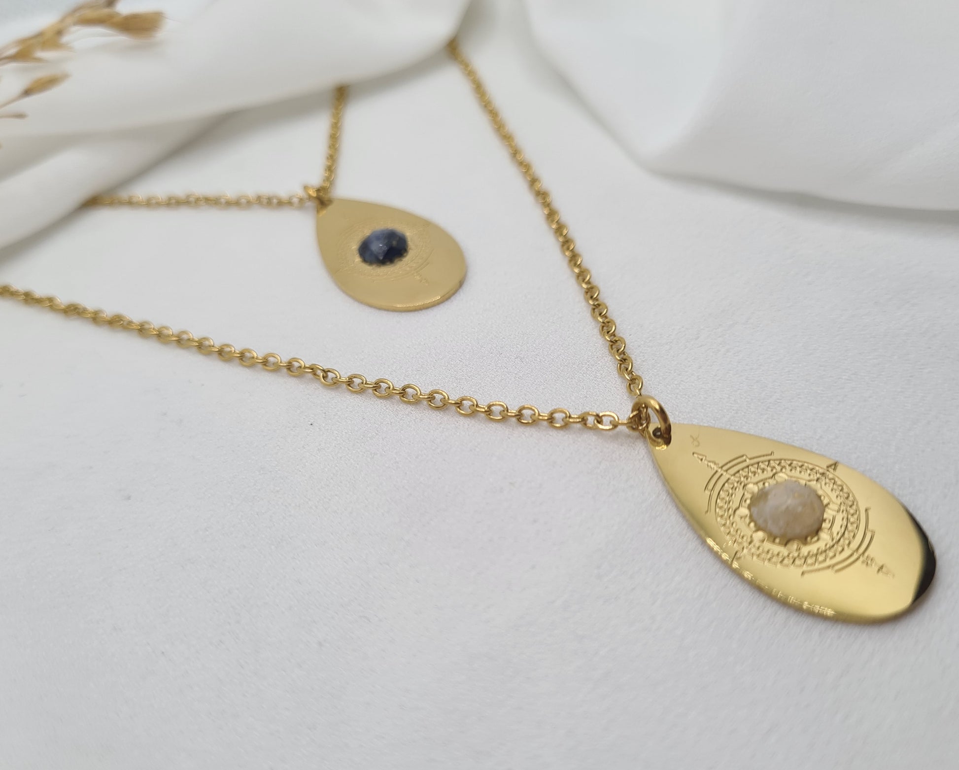 Sautoir en acier inoxydable réglable et pierre naturelle au choix LAPIS LAZULI ou AGATHE BLANCHE.