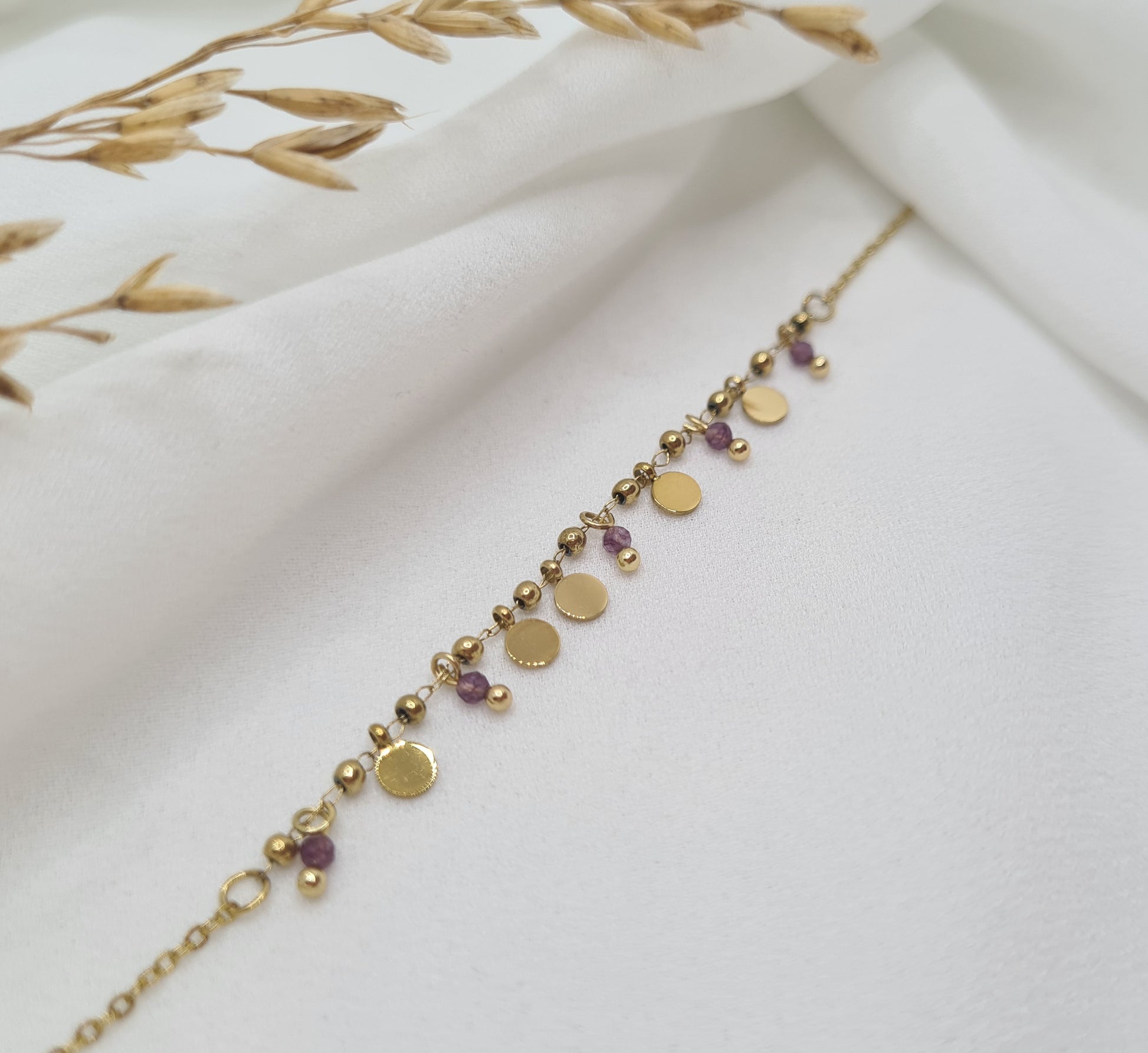 Magnifique bracelet en acier inoxydable réglable et pierres naturelles d'Améthyste