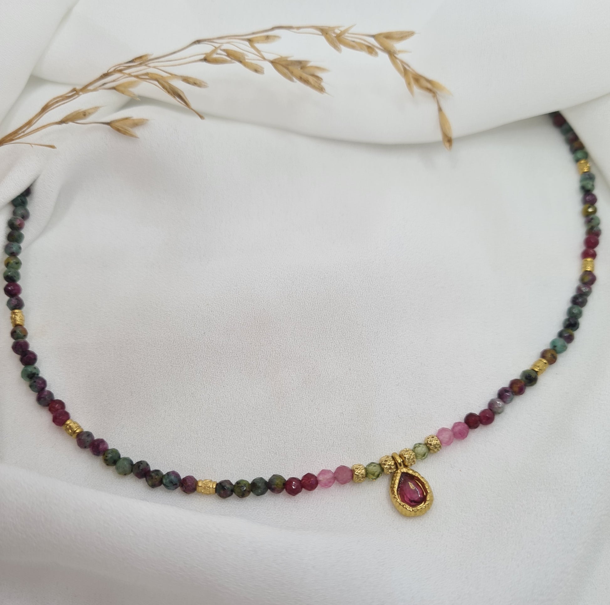 Magnifique collier en acier inoxydable réglable et pierres naturelles.