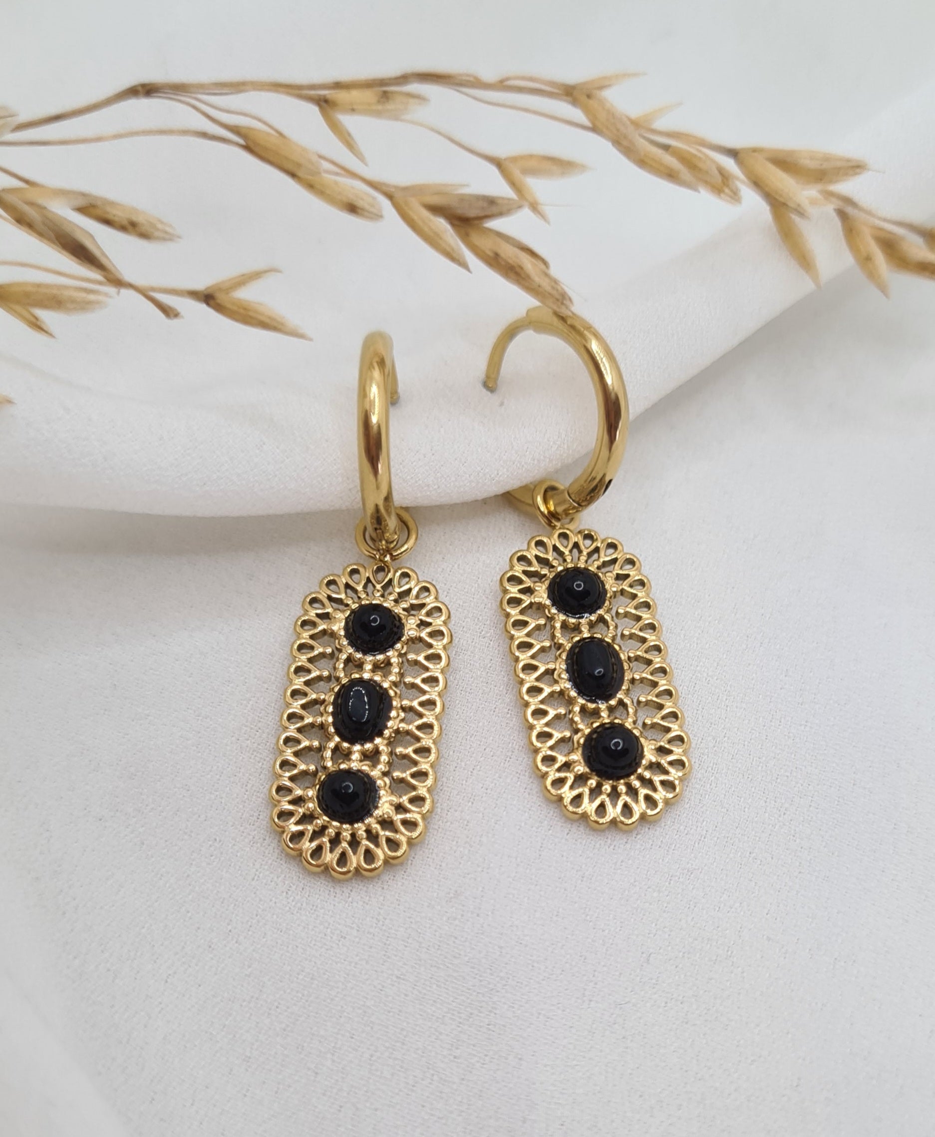 Magnifiques boucles d'oreilles en acier inoxydable et pierres naturelles d'onyx
